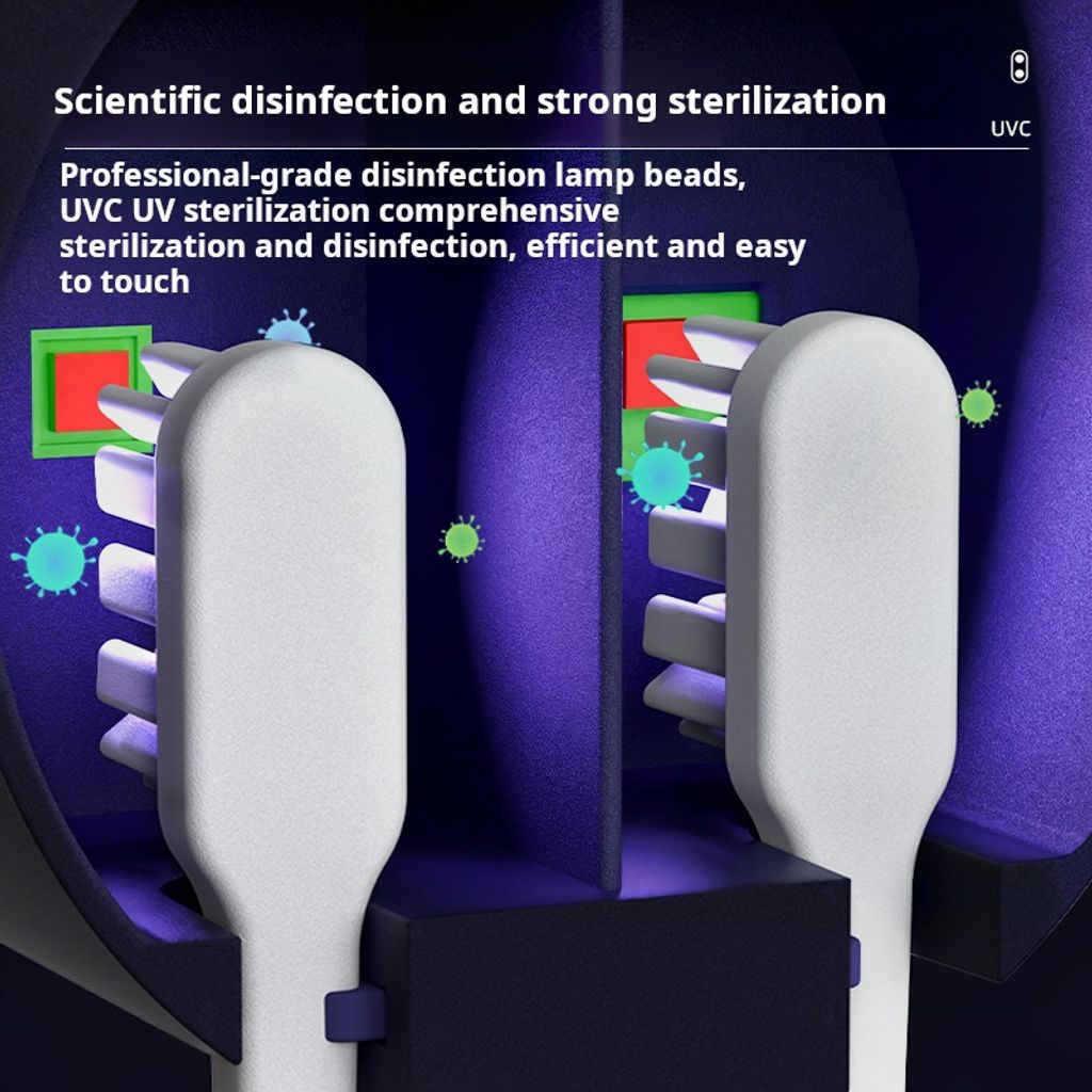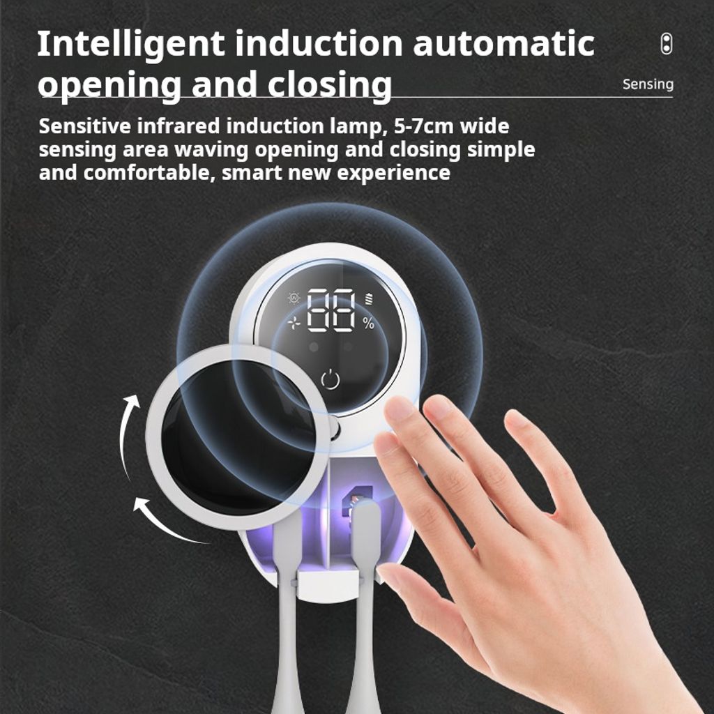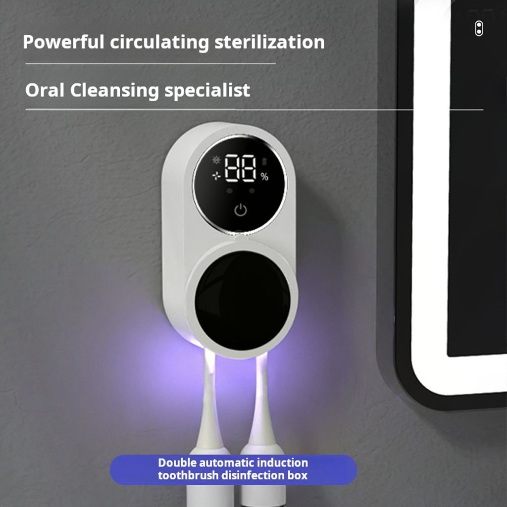 Dual Automatic Sensor Open-Close Toothbrush Sterilization Box, UV Toothbrush Sterilizer, Bacteria-Killing, No Drilling, Wall-Mounted